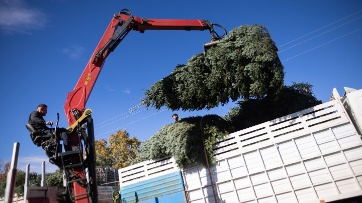 Νταλίκες και φορτηγά, φωνές, τηλέφωνα που χτυπούν ασταμάτητα από νωρίς το πρωί μέχρι και αργά το βράδυ, αλλά και κεράσματα κι ευχές, είναι η εικόνα που εμφανίζει τις τελευταίες ημέρες το ορεινό χωριό του Ταξιάρχη Χαλκιδικής, με τους ελατοπαραγωγούς να ετοιμάζονται πυρετωδώς, προκειμένου την Παρασκευή 29/11 να βρεθούν στα «πόστα» τους σε Αθήνα και Θεσσαλονίκη και σταδιακά σε περισσότερα από 60 σημεία σε όλη την Ελλάδα.