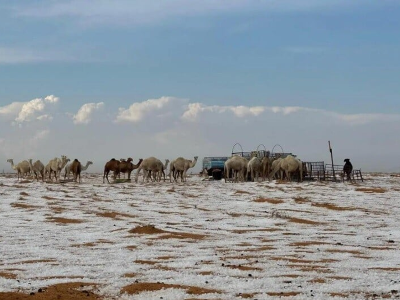 Χιόνισε στην έρημο της Σαουδικής Αραβίας για πρώτη φορά στην ιστορία, καθώς στην περιοχή Al-Jawf, μετά από ημέρες βροχών, έπεσε χαλάζι και μετά χιόνι.