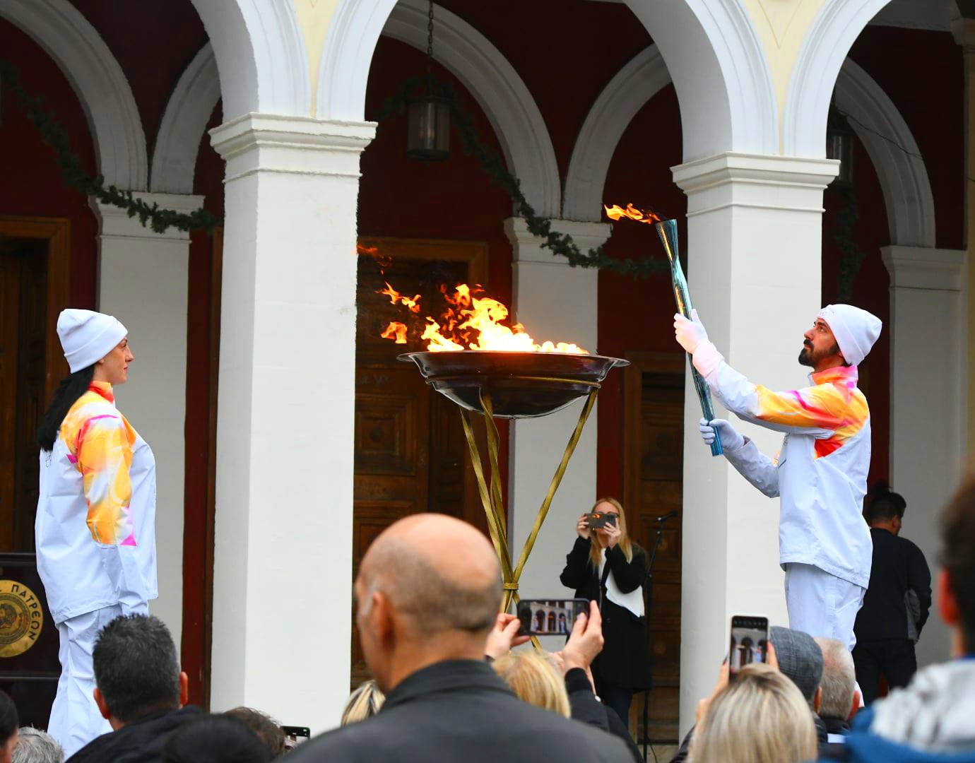 Η Ολυμπιακή Φλόγα πέρασε σήμερα από την Πάτρα στο πλαίσιο της λαμπαδηδρομίας για τους Χειμερινούς Ολυμπιακούς Αγώνες του 2026.