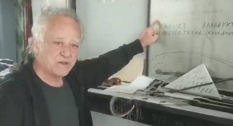 Με πόνο ψυχής και δάκρυα στα μάτια αντίκρισε αυτή την κατάσταση, απορώντας για τη μανία που είχε κυριέψει αυτούς που το έκαναν. Σπασμένες καρέκλες, τραπέζια, μουσικά όργανα, μπουκάλια, κάδρα, αφίσες, CD, αρχεία, πυροσβεστήρες, ποτήρια – αυτά είδε όταν μπήκε στον χώρο ο Νίκος Καλογερόπουλος.