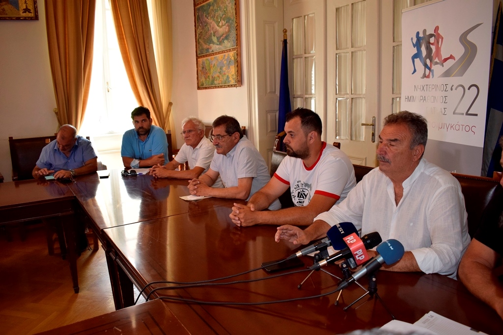 Ο Δήμαρχος Πατρέων Κώστας Πελετίδης, ο Αντιδήμαρχος Παιδείας και Αθλητισμού, Τάκης Πετρόπουλος και τα μέλη της Οργανωτικής Επιτροπής του Νυχτερινού Ημιμαραθωνίου Πάτρας 2022 «Φάνης Τσιμιγκάτος» παραχώρησαν σήμερα το μεσημέρι στο Δημαρχείο, συνέντευξη Τύπου. Στην συνέντευξη συμμετείχαν ο μεγάλος Πατρινός Μαραθωνοδρόμος Νίκος Αργυρόπουλος, μεταφέροντας με συγκίνηση, την κοινή πορεία του με το Φάνη Τσιμιγκάτο, την άμιλλα και τη φιλία που αναπτύχθηκε μεταξύ τους, ο αδελφός του Φάνη Τσιμιγκάτου, Γιώργος Τσιμιγκάτος και ο γιος του, Νίκος Τσιμιγκάτος.