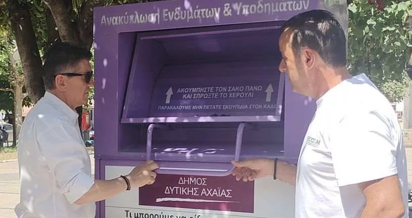 Στο δίκτυο ανακύκλωσης αποβλήτων ειδών ένδυσης και υπόδησης εντάχθηκε ο Δήμος Δυτικής Αχαΐας στο πλαίσιο προώθησης της ανακύκλωσης και των αρχών κυκλικής οικονομίας, έπειτα από συνεργασία με την εταιρεία RECYCOM. Τα οφέλη που προκύπτουν μέσα από αυτή την πρωτοβουλία είναι πολλαπλά καθώς, αφενός πρόκειται για μια έμπρακτη προσφορά κοινωνικής στήριξης σε ευπαθή και ευάλωτα άτομα, αφετέρου με αυτόν τον τρόπο συμβάλλει η Δυτική Αχαΐα στην προστασία του περιβάλλοντος, όπως τόνισε ο Δήμαρχος Δυτικής Αχαΐας Γρηγόρης Αλεξόπουλος: