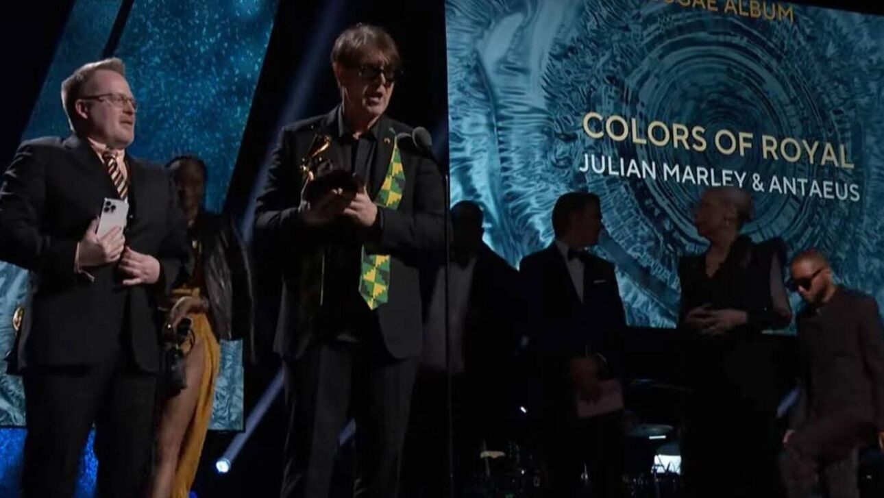 Τα φετινά μουσικά βραβεία Grammy, τα οποία πραγματοποιήθηκαν το βράδυ της Κυριακής στο Λος Άντζελες είχαν (και) ελληνικό χρώμα. Και αυτό γιατί ανάμεσα στους μεγάλους νικητές της βραδιάς υπήρξαν και δύο Έλληνες. Ο λόγος για τον Alexx Antaeus και τον Αντρέα Γιατράκο, οι οποίοι βραβεύτηκαν ως παραγωγοί του Julian Marley, γιου του θρύλου της παγκόσμιας μουσικής σκηνής, Bob Marley. Ο δίσκος του Julian Marley «Colors of Royal» πήρε το Grammy του Καλύτερου Ρέγκε Άλμπουμ για το 2023, χαρίζοντας και στην ελληνική μουσική σκηνή μία μεγάλη επιτυχία, λόγω της συμβολής των Alexx Antaeus και Αντρέα Γιατράκου σε αυτόν. Δεδομένου μάλιστα ότι ο Julian Marley βρισκόταν σε περιοδεία στην Αυστραλία και Νέα Ζηλανδία και δεν κατάφερε να δώσει το «παρών» στη τελετή απονομής, το πολύτιμο βραβείο παρέλαβε ο Alexx Antaeus ο οποίος δεν μπορούσε να κρύψει τον ενθουσιασμό του.